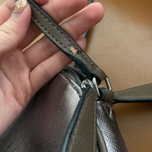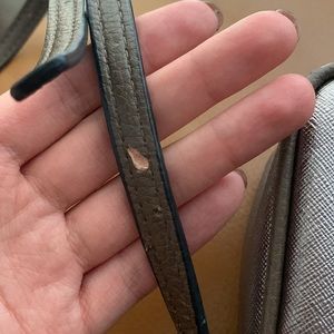 Used condition double pocket crossbody bag. There are 3 flaws on the strap which you can find in the pics. It’s a cute bag and was well loved hence the scratches on the strap. Price reflects it!
