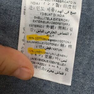 Blue denim long sleeve button up shirt with beautiful lace details. Size XS but fits more like a small. Cotton and linen. Guess brand in great condition. Perfect for spring!