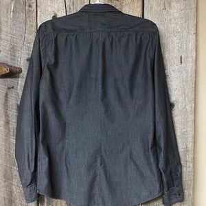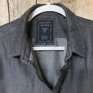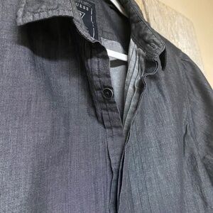 Guess dark blue long sleeve chambray shirt. Pleated front detail with hidden buttons. 100% cotton.