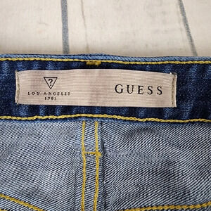Guess Distressed Button Fly Short Dark Wash 5 Pocket Size 27
