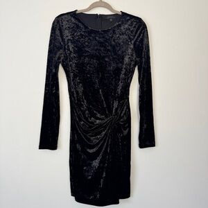 Guess Dress Crushed Velvet Stretch Black Twist Front Long Sleeve Dark Romantic M