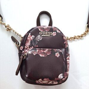 Guess Evan Aubergine Colour Floral Mini Backpack Crossbody Bag