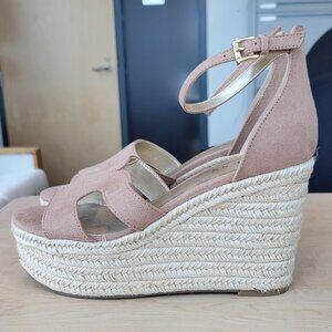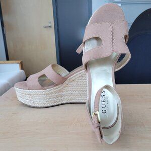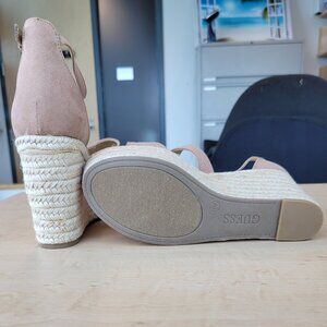 Walking by the beach, seeing the water glisten, feeling the wind blow, smelling that salty air and feeling that sand. That is what the Guess Factory Ayleen Espadrille Wedges encaptures, that tropical vibe walking by the seaside. From the cream and tan colour that matches the colour of the sand, to the texture of the midsole, these sandals exude the tropics. As well as the upper being made of suede to add a luxrious feel. Features
