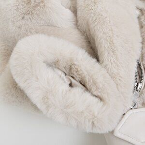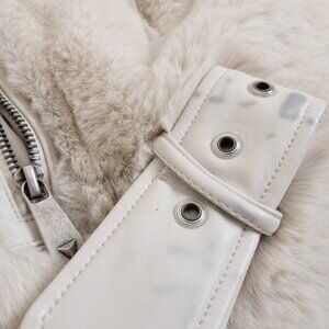 This gorgeous Guess faux fur biker jacket in ivory/cream was screen worn by Laura Haddock as Max Meladze on Netflix’s hit show The Recruit. Purchased directly from the official set sale, the jacket includes its set tag (#2).