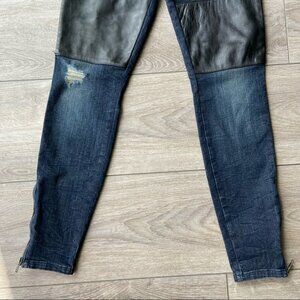 Guess Faux Leather Patch Distressed Skinny Moto Jeans