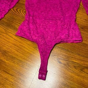 🌷 Guess 🌷 Fuchsia Pink Lace Mockneck Cutout Back Bodysuit
