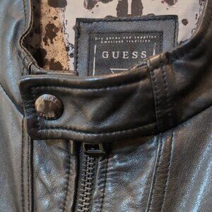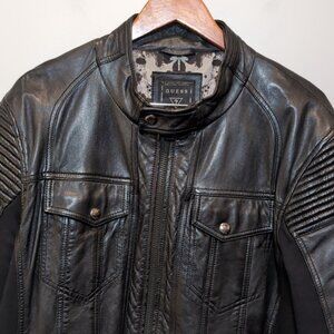 Guess Genuine Lamb Leather Moto Jacket Knit Padded Black Biker Motorcycle Coat