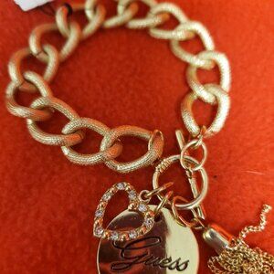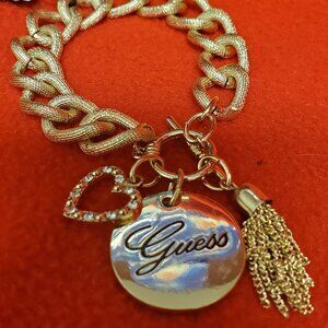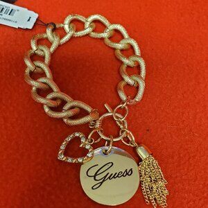 Guess gold bracelet. Tags still attached. Bracelet comes with sparkly heart shape pendant, gold tassel and round Guess charm.