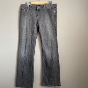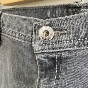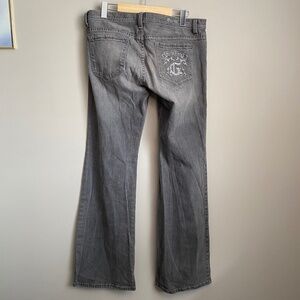Stylish gray jeans with a flare and wide leg design. Classic five-pocket style. Perfect for casual wear.