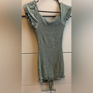Guess Green short Flutter Sleeve smocked ruched bodycon Mini Dress size XS