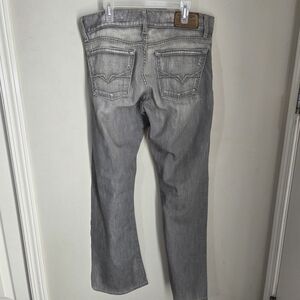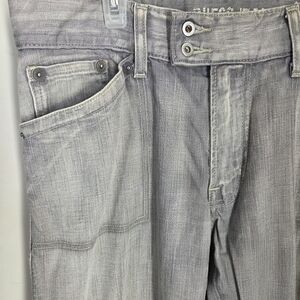 Trendy gray denim jeans with a sleek design. Perfect for casual wear. Inseam 30" Rise 10" Waist 32"