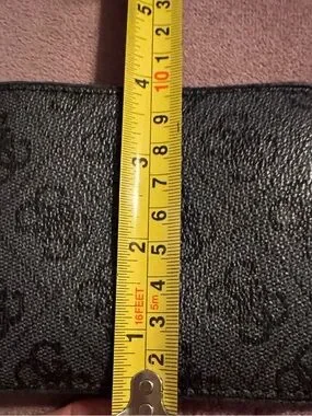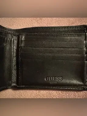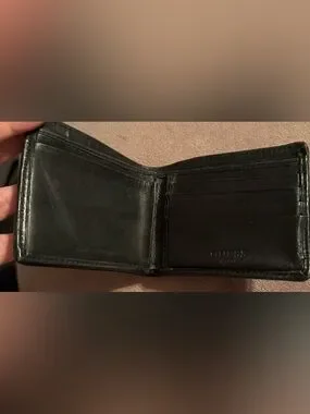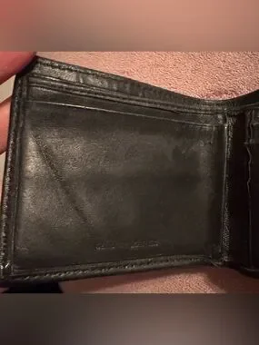 In good used condition. There is a large crease mark on the left side inside the wallet due to use and the softness of the leather. Price reflects dent mark.