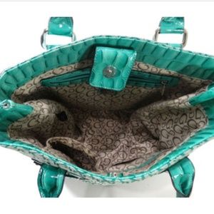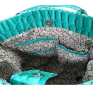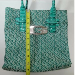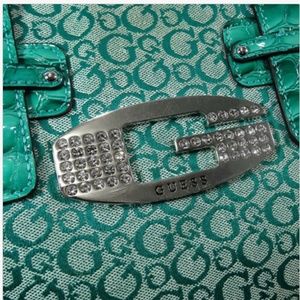 Guess Hangbag Green Medium Purse Logo G CanvasFaux