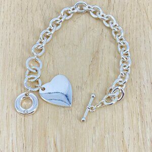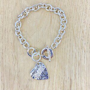 Guess Heart Graffiti Logo Silver Tone Toggle Bracelet. High Sheen, clear rhinestones on heart charm. Fit wrist sz 7" to 7.5" . Condition is like new.