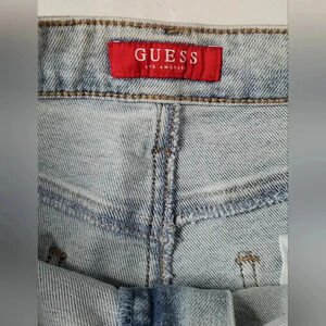 Guess High Rise Loose Boyfriend Denim Jeans Raw Hem SZ 31 W Light Wash