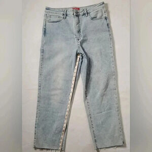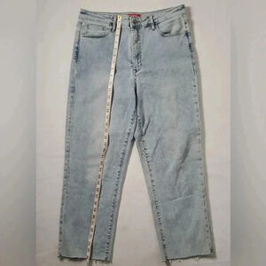 Guess High Rise Loose Boyfriend Denim Jeans Raw Hem SZ 31 W Light Wash