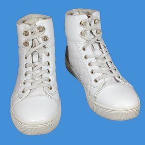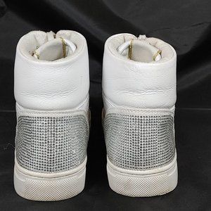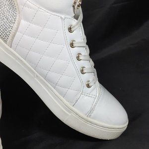 Guess Women's Sz 6 White Quilted High Top Sneaker Athletic Shoe Rhinestone Heel