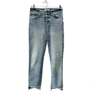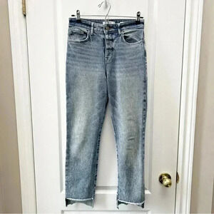 Guess It Girl Jeans Straight Leg 10” Rise Button Fly Raw Step Hem Blue Size 25