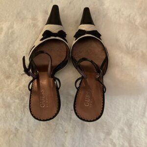 Guess Ivory Leather and Black Patent Sling Back High Heels (Pre Owned)