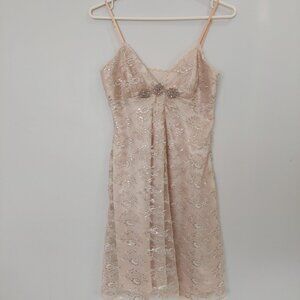 Guess Jeans Champagne Color Metallic Lace Dress, Women's M