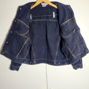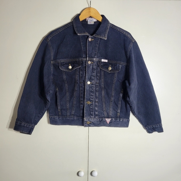 Good condition Y2K Guess jeans jacket that is made in canada. Has slight discoloration throughout giving it a washed-out look. (see pictures above)