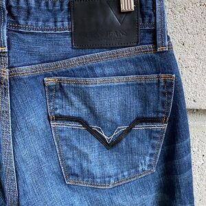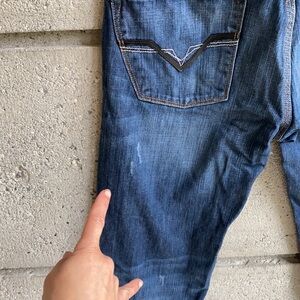 Condition: lightly worn. The distressing you see where I am pointing at is part of their design.