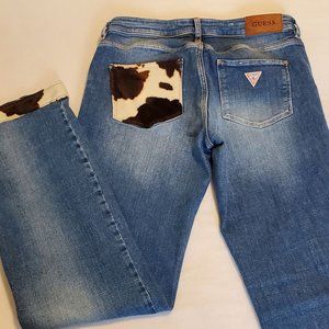 Guess Jeans. Size 27” After market custom pocket and hem details in faux cowhide. Like new condition. Straight leg.