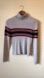 Guess Jeans vintage Y2K style ribbed rib knit knitted long sleeve fitted and flattering cropped length turtleneck sweater shirt crop top with stripe / striped details / print and logo embroidered on arm. Acrylic and cotton blend. Primarily grey black and red in colour. Size M / medium. Great gently pre loved condition / EUC. Approx measurements armpit to armpit: “ length “ sleeve: “ Offers welcome. Ships in 1-2 business days.