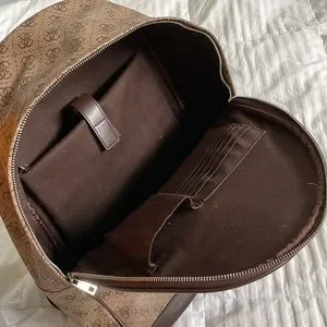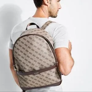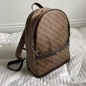 Details: A saffiano faux-leather backpack perfect for traveling. It features an allover logo print, contrast trim and a front logo detail. Front zipped pocket, top zipper closure and interior pockets.