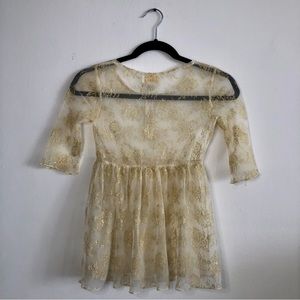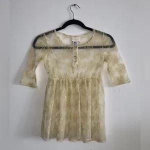 Guess Kids M (10-12) Gold Lace Button Top Shirt 3/4 Sleeves Used / Like New