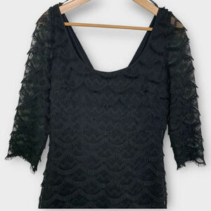 Guess Kira Lace Cocktail LBD Dress Scalloped Fringed Sz 8