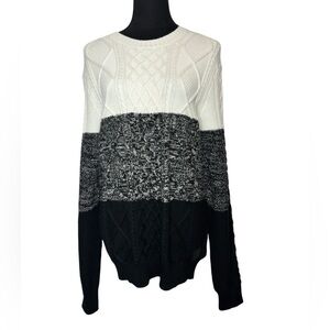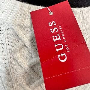 Keywords: Guess colorblock sweater, cable knit pullover, neutral knitwear