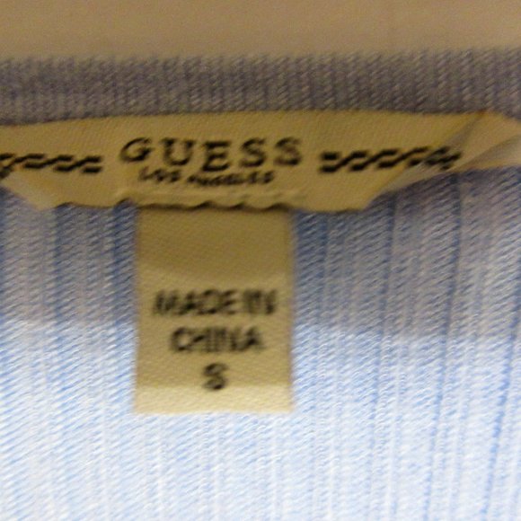 Guess Knitwear Zip Up Fitted Cardigan Long Sleeve Blue Skinny Small Woman 73% Viscose 23% Polyamide Hand wash (maximum temperature 30℃), wash with like colors, use mild detergent, do not soak, reshape whilst damp Made in China, good condition