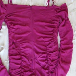 Guess pink/fushia bodycon rushed dress. The sleeves of the dress are "off shoulders" and are in a mesh material. The fabric is super soft and stretchy. The whole dress is mesh with another layer underneat. It has a zipper in the back and skinny staps on the shoulders. Super comfy and sexy. This dress has never been worn, in excellent condition and great quality!
