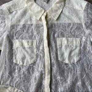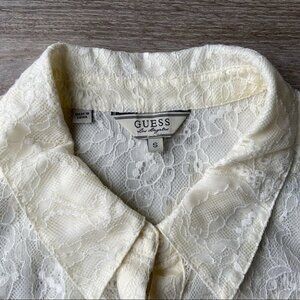 Guess Lace Button Down Stretch Blouse Shirt