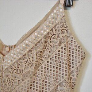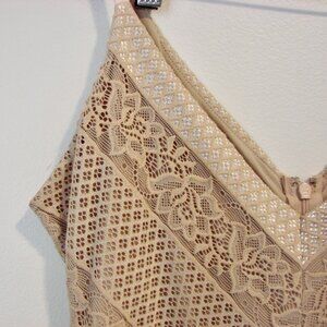 Guess Lacey Bodycon Mini Dress Nude Tan Stretch Bandage Date Night ~ Size Small ~ Shell: 90% Nylon, 10% Spandex. Lining: 94% Polyester, 6% Spandex