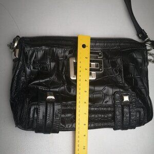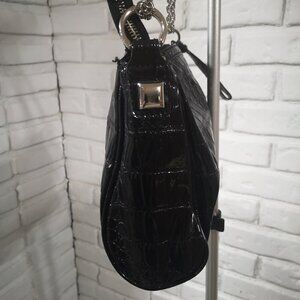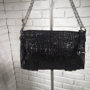 Guess Ladies Black Faux Leather Zipper Closure Chain Straps Hand/Shoulder Bag
