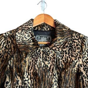 This Guess Leonard Print Cropped Blazer in size medium is in great pre-owned condition with minimal signs of wear. Featuring a flattering single button closure and shoulder padding for structure, this cute cropped blazer is perfect for adding a stylish touch to any outfit.