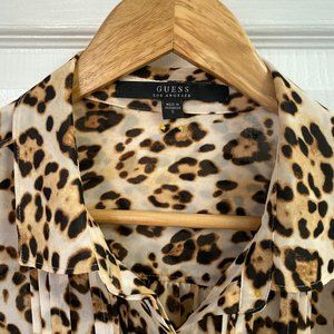 Guess Leopard Print Button-Up Women's Top Blouse Size S