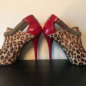 Heeled with red peep toe Red Heels Leopard print. still in good condition good for clubbing