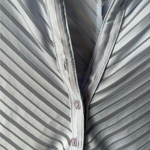 Stylish light blue top with diagonal stripes. Button-up front. Long sleeves