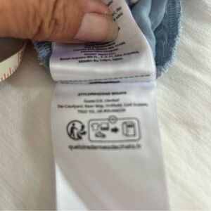 ➕Guess Light Blue crop shirt with ivory embroidery Large. NWOT