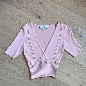 Guess baby pink top. Ruched waist and flattering v neck. Fits M/L