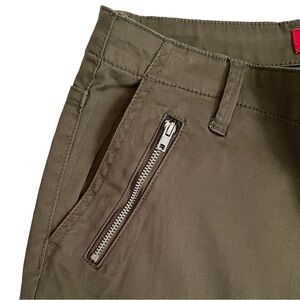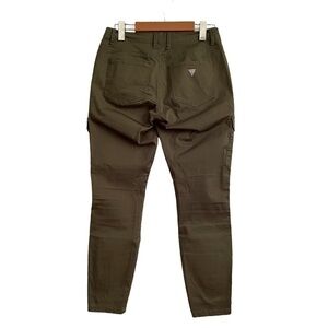 Guess lightweight with a slight sheen cargo pants. Front, back and thigh pockets and two faux front zipper pockets.