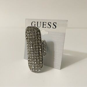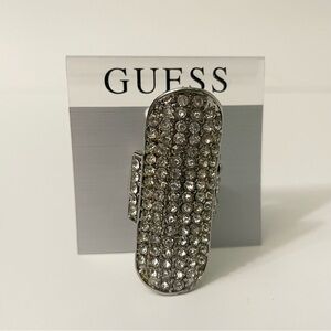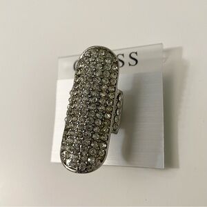 Guess Long Silver Tone Rhinestone Statement Ring Size 8