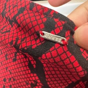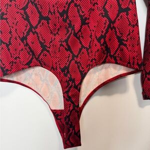Keywords: Guess Neyva bodysuit, red off shoulder top, snake print ruched bodysuit