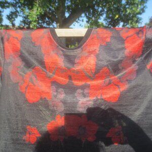 Guess Los Angeles Men's Sexy Sheer Red Rose Black Polyester T-Shirt - Size Large. In excellent condition with no damages. The collar label does show peeling. No snags or tears. Super sexy and fun and still carrying class and style with it. This t-shirt can be unisex fashion friendly.