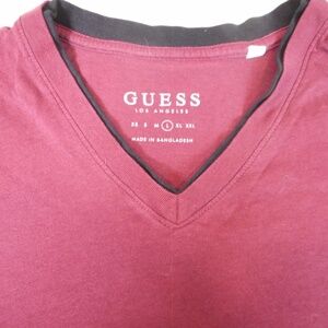 Guess Los Angeles Men’s V-Neck T-Shirt – Burgundy Maroon Size L