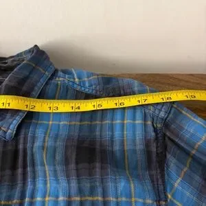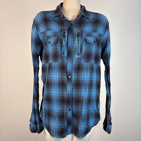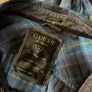 Guess Los Angeles Women's L Regular Fit Blue Plaid Flannel Shirt
