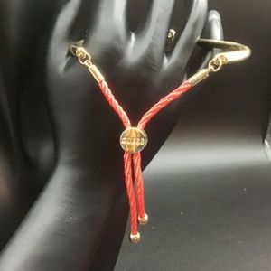 Guess “Love Knot” Bangle Bracelet in gold metal and Orange twisted Rope
